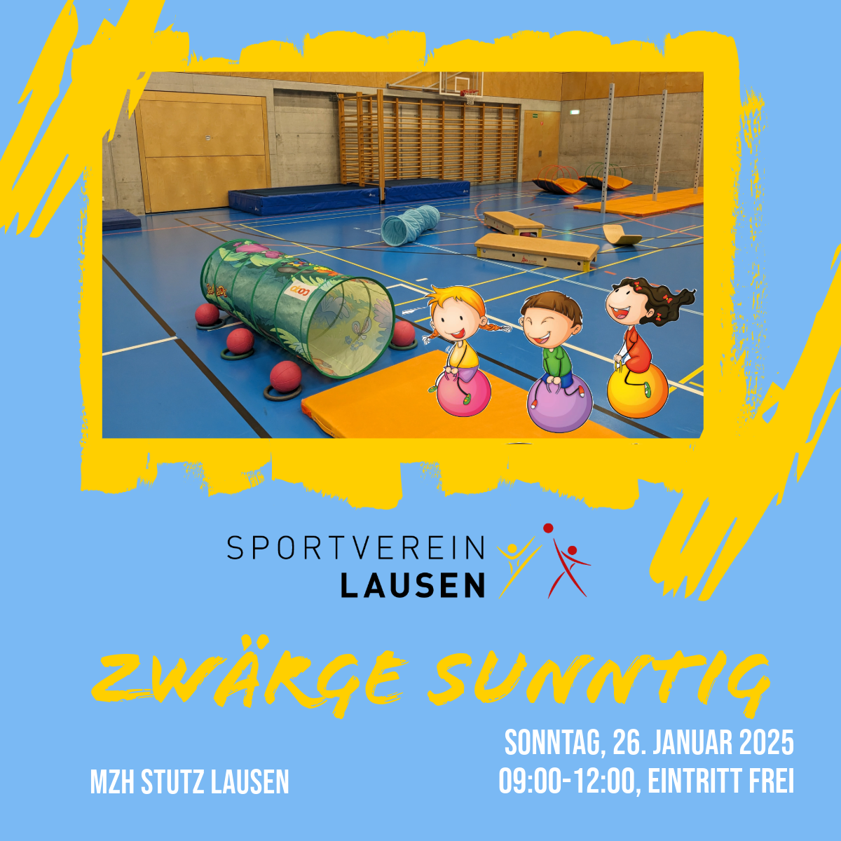 Am Sonntag 26. Januar 2025 führen wir den nächsten Zwärge-Sunntig durch. Der Zwärge-Sunntig ist eine Bewegungslandschaft für Kinder von 0-6 Jahren.