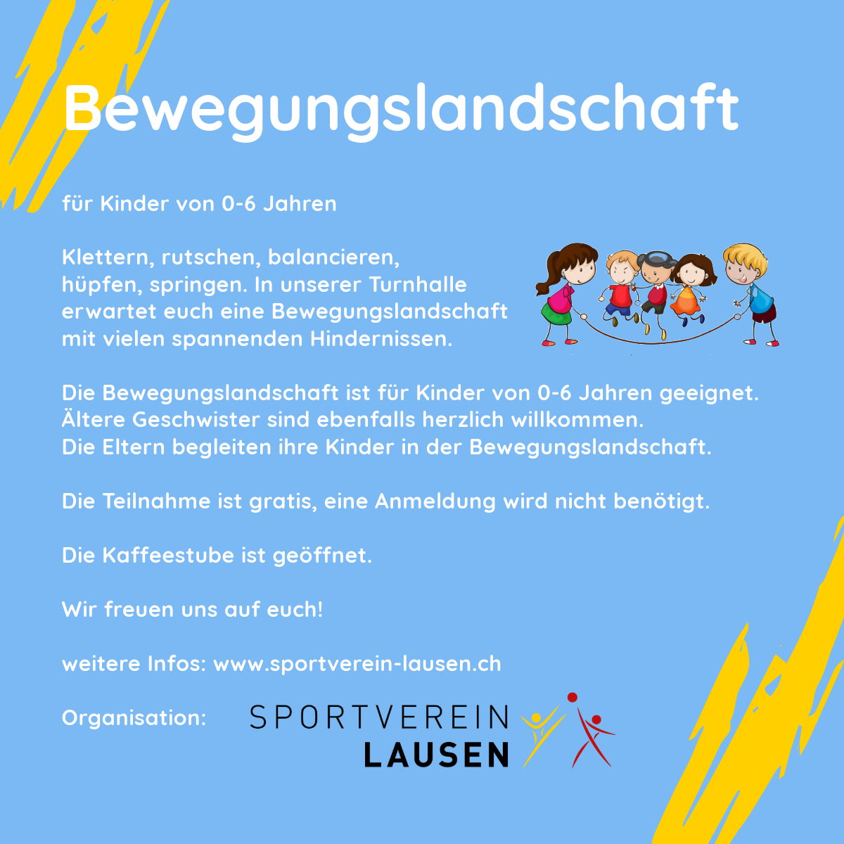 Trotz schönem Wetter fanden viele Familien den Weg in die Stutzhalle, um auf der Bewegungslandschaft zu turnen und zu experimentieren. Es wurde gerannt, geschaukelt, balanciert und gerutscht. Jedes Kind fand eine Aktivität.