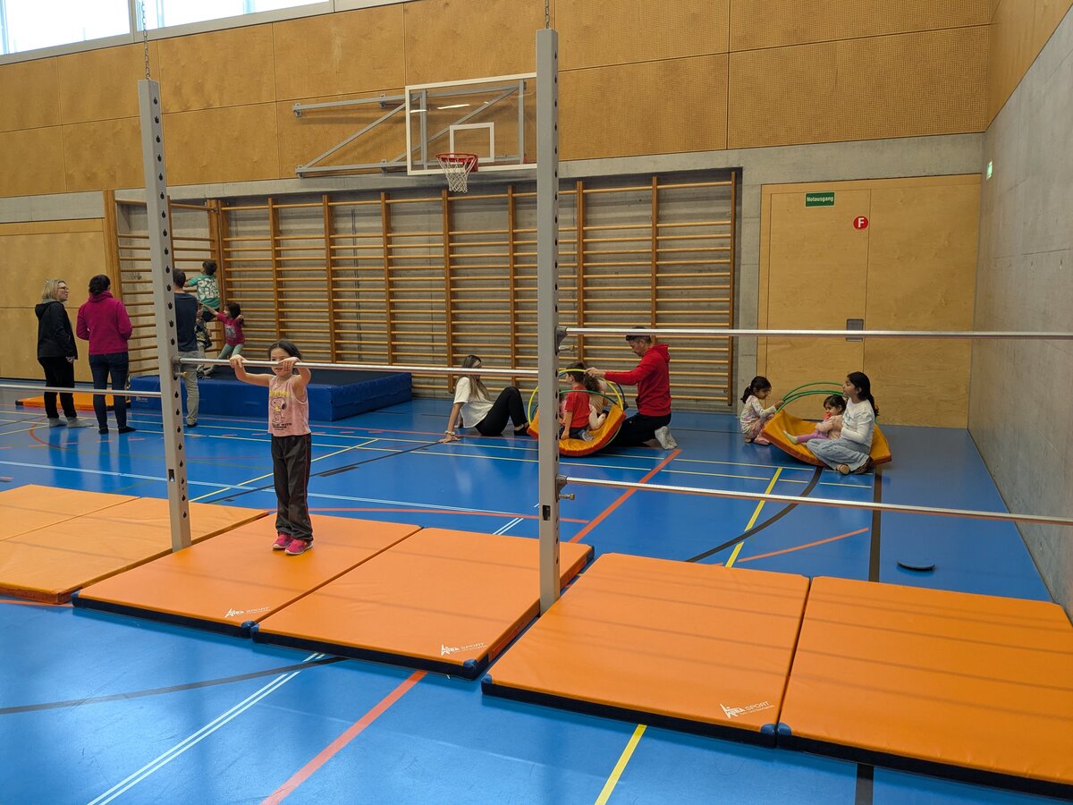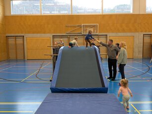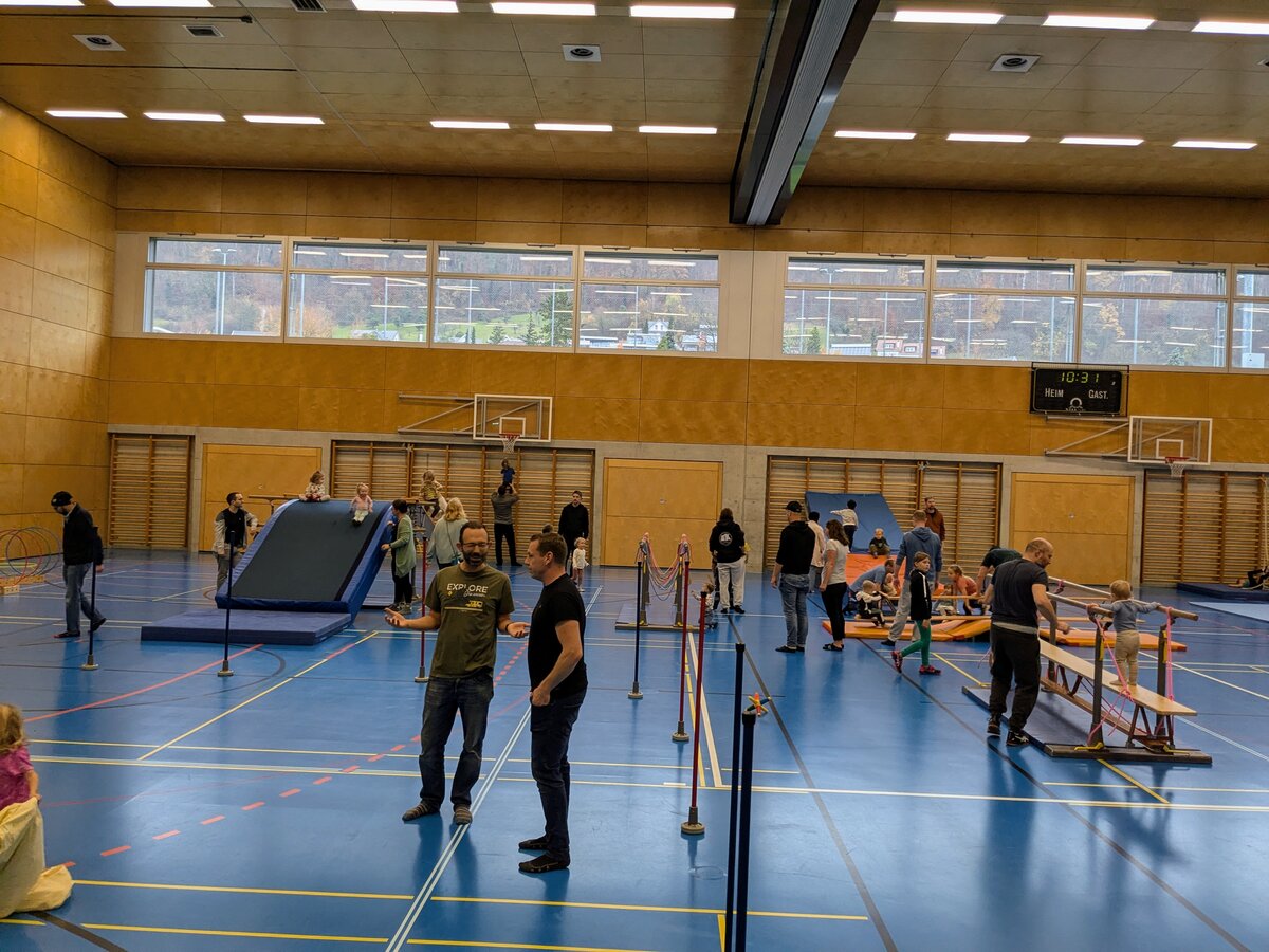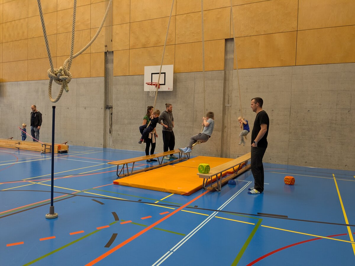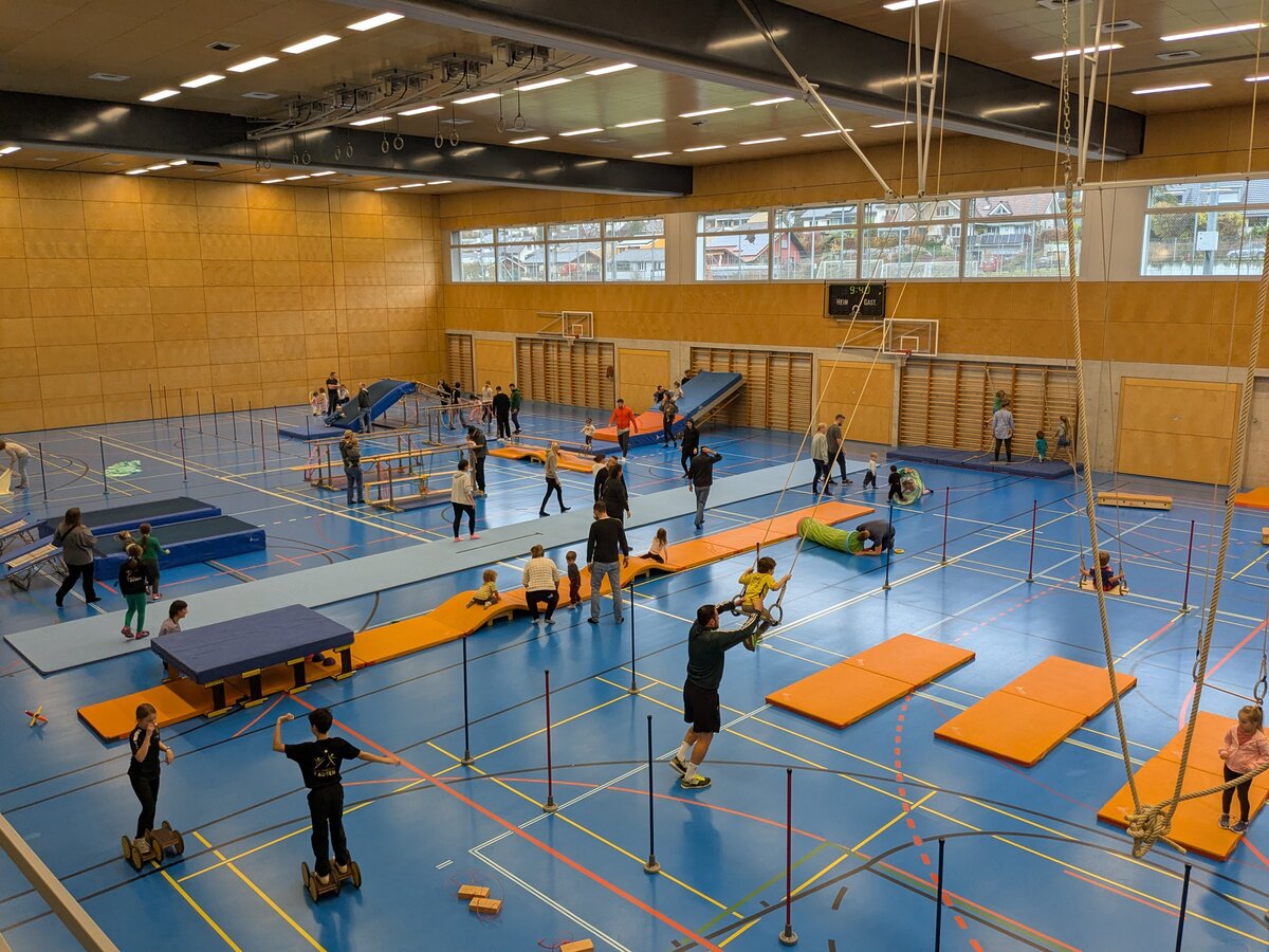 Der «Zwärge-Sunntig» ist eine Aktion, um Familien mit Kindern Freude am Bewegen zu vermitteln. Für einen Morgen lang wurde die Stutz Halle zu einem riesigen Spielplatz für die Kleinsten und ihre Familien, um auf der Bewegungslandschaft zu turnen und zu experimentieren. Es wurde gerannt, geschaukelt, balanciert und gerutscht. Jedes Kind fand eine Aktivität.