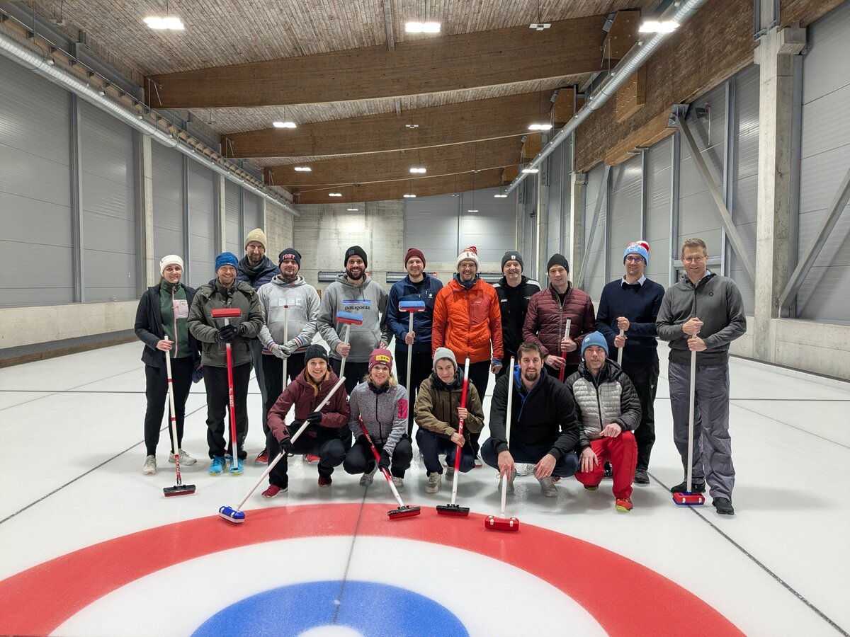 Die 16 Enthusiasten wurden auf zwei Bahnen verteilt, wo wir 4 gegen 4 in gemischten Teams spielten. Uns standen zwei Coaches zur Verfügung, die uns durch den ganzen Prozess begleiteten. Ob wir schon Erfahrung hätten, wurden wir gefragt. Einige meinten, dass die vielen Stunden auf dem Sofa mit Olympia-Schauen doch auch mitzählen sollten, aber da hatten wir uns ein wenig geirrt. So einfach, wie die Profis es im Fernsehen aussehen lassen, ist es nicht: Schon elegant über das Eis zu gleiten ist schwierig, geschweige denn, einen Stein richtig zu stossen!
